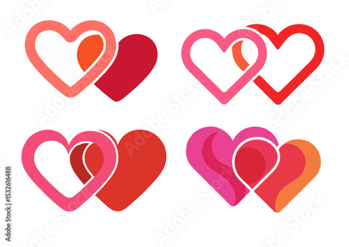 heart, interlocking, illustration, pink, red, modern, symbolic, love, graphic, affection, design, human relationships, connection, romantic, emotion, artwork, visual, representation, harmony, couple, playful, elegant, simplicity, graphic art, intimacy, copy space