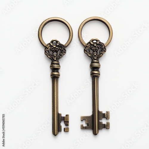 Two keys on a keychain, isolated against a white background.