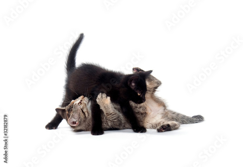 adorable, animal, baby animal, black, cat, cute, felino, fighting, kitten, cat, mammal, pet, playing, tabby, white background, wrestling