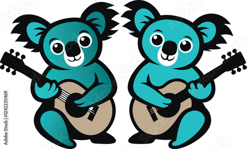 two Koala playing guiter vector illustration