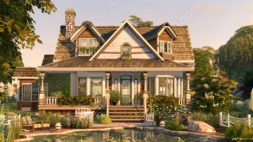 two level farm house, with big windows and pool