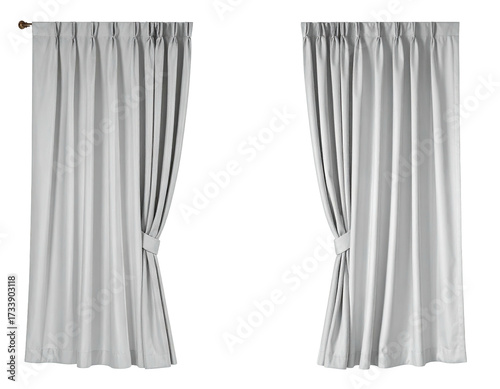 curtain, drapery, grey, clothes, fabric, textile, window, covering, panel, pleated, drape, hanging, vertical, interior, home, design, decor, background, black, neutral, modern, simple, elegant, clean, texture, smooth, soft, light, shade, privacy, room, daytime, detail, indoor, studio, isolated, empty, blank, plain, divider, element, composition, stationary, tied, open