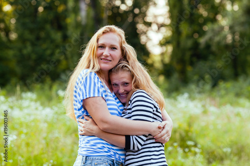 adult, background, beautiful, casual attire, caucasian, charming, cheerful, closeup, day, embracing, face, family, female, generation, green, happiness, happy, human, indoor, leisure, life, lifestyle, looking, love, mature, mid, nature, outside, park, people, person, photo, portrait, pretty, red, red hair, senior, sister, smiling, together, togetherness, 2, woman