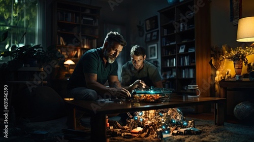 board game, man, playing, electronic, home, night, strategy, entertainment, indoor, leisure, sharpened, concentration, teamwork, illuminated