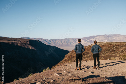 america, california, denim, dirt, explore, fashion, friends, hill, horizon, jacket, lifestyle, looking, matching, mountain, natural, nature, outdoors, pair, style, twin, 2, us, young men, caucasian, white, man, male, person, people, adult, adult, 20s, young adult, young adult, young person, grown-up