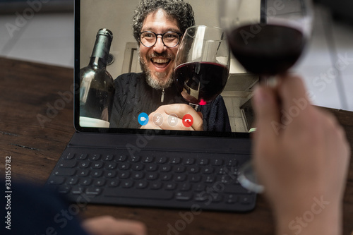 middle-aged, friends, toast, toasting, red wine, smiling, people, adult, clinking, conference, bottle, celebrate, celebrate, zoom, celebration, communication, computer, connection, desk, digital, distance, drink, happy, home, cyberspace, laptop, laughing, lifestyle, male, man, network, online, person, phone, safe, stay, technology, together, togetherness, wine