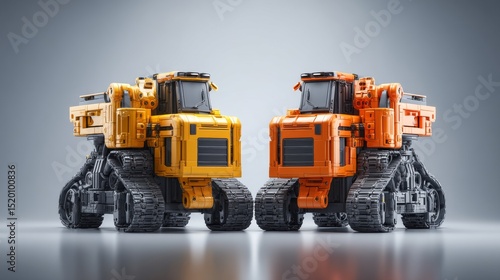 Two modern construction vehicles in vibrant colors with a sleek design.