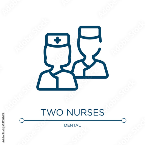 Two nurses icon. Linear vector illustration from health collection. Outline two nurses icon vector. Thin line symbol for use on web and mobile apps, logo, print media.