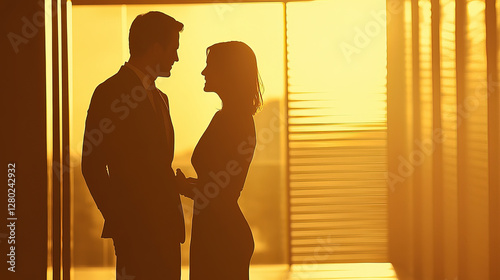 office, lover, conversation, affection, human relationships, connection, intimate, soft, window, warm, atmosphere, romantic, couple, emotion, communication, minimal, professional, workplace, serene, love, bond, personal, closeup, romance, engagement, calm, quiet, peaceful, modern, tender, heartwarming