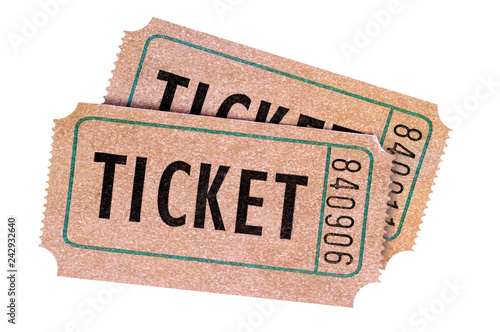 ticket, old, used, 2, motion picture, vintage, cinema, closeup, stub, stack, isolated, background, concert, entrance, pair, brown, beige, retro, raffle, stacked, white, close, up, macro, torn, admission, flat, top, front, faded
