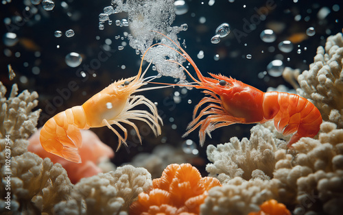 shrimp, underwater, coral reef, bubble, orange, white, battle, fighting, aquarium, aquatic, marine life, ocean, sea, nature, wildlife, animal, crustacean, invertebrate, marine animal, marine animal, colourful, vibrant, beautiful, stunning, peaceful, serene, tranquil, calm, quiet, harmonious, relaxing, underwater photography, oceanography, fish, coral, reef, tropical, water, marin