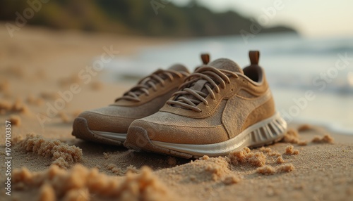 sneaker, beach, sand, outdoors, daytime, no people, serene, peaceful, calm, footwear, vacation, relaxation, summer, coastal, nature, lifestyle, travel, sunlight, casual attire, sport, shoe, landscape, scenery, colourful, holiday, environment, natural, sunny, tropical, shadow, texture, soft, minimalist, calmness, scene, clear sky, vibrant, day, cosy, sunny day