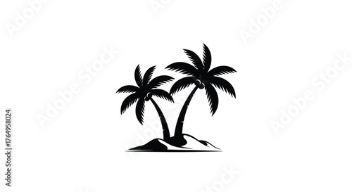 palm tree, island, tropical, beach, vacation, get-away, paradise, nature, scenic, landscape, silhouette, illustration, art, design, graphic, icon, symbol, minimalist, simple, black-and-white, monochrome, contrast, summer, sun, ocean, sea, coast, shore, exotic, adventure, explore, travel, journey, escape, relaxation, serenity, peaceful, tranquil, organic, botanical