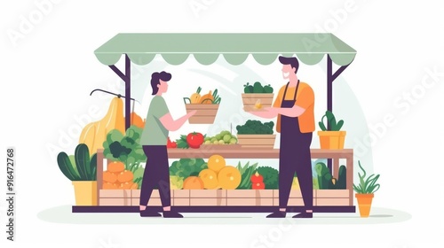 market, man, shopping, food, vector, flat, illustration, organic, grocery, fresh, vegetable, business, fruit, seller, store, person, healthy, vegetarian, cartoon, retail, street, sale, farm, farmer, marketplace, selling, stall, design, character, male, product, client, local, racked, harvest, bag, natural, health, agriculture, banana
