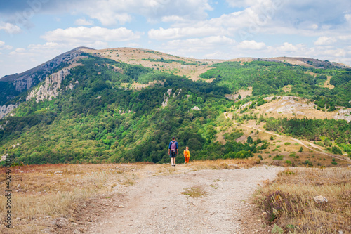 vale, field, space, clear sky, sunny, pine, explore, up high, over, high, hiking, peak, scene, tour tourism, summer, sky, season, scenery, wood, green, tree, environment, hill, natural, nature, mountain, park, tree, forest, mountain, mountain view, view, landscape, blue skies, top, wild, cloud, cloud, gorge, sea, horizon, infused, 2, people, road, walk, pass, holiday maker