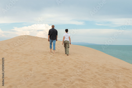 dune, beach, ocean, sand, coastal, horizon, walking, nature, landscape, seascape, outdoors, adventure, travel, couple, vacation, tour tourism, leisure, freedom, exploration, 2, woman, man, group, journey, tranquil, peaceful, scenic, summer, destination, recreation, active, lifestyle, retreat, get-away, shoreline, coast, waterfront, maritime, cloudscape, vista, panorama, overlook, footprint, hiking, wanderlust, serene, remote, natural