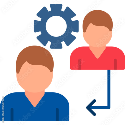 Two people with gear and arrow Icon
