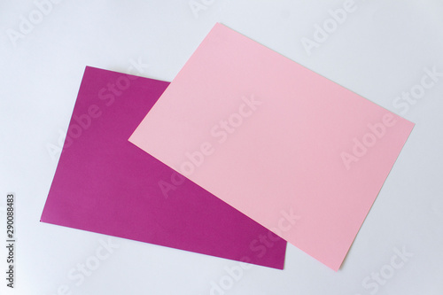 pink, paper, geometric, colourful, background, card, 2, piece, decoration, creativity, art, creative, artistic, design, isolated, blank, abstract, different, together, communication, letter, message, white, origami, colours, object