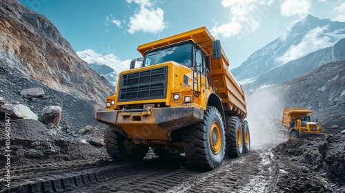 dump, truck, construction, site, gravel, transport, mountainous, terrain, heavy, machinery, vehicle, rugged, landscape, hauling, equipment, mountain, clear, sky, midday, excavation, mining, dirt, road, industry, driver, load, operation, civil, engineering, infrastructure, quarry, work, range, activity, dust, maintenance, job, rock, men at work, safety, industrial, grading, management, project, operation, generative, ai