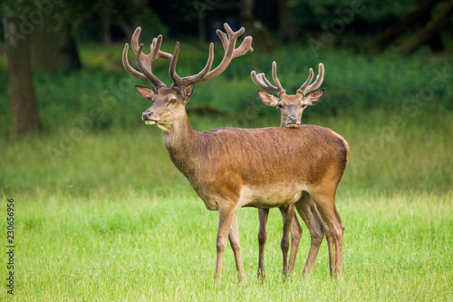 Two Red deers in summer
