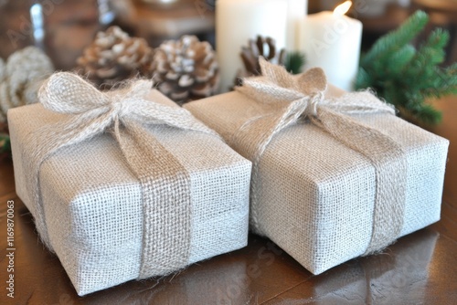 burlap, gift, gift, present, present, rustic, twine, bow, bow, wrapping, wrapped, natural, simple, farmhouse, country, wood, wooden, surface, texture, beige, brown, neutral, gift wrap, gift wrapping, holiday, christmas, birthday, wedding, anniversary, celebration, occasion, hand-made, bricolage, craft, cardboard box, gift box, environmentally friendly, sustainable, vintage, romantic, elegant, stylish, brown paper