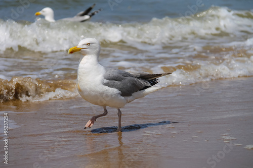 Two seagulls in a water of North sea in Zandvoort, the Netherlan