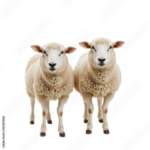 Two sheep standing side by side isolated on transparent background