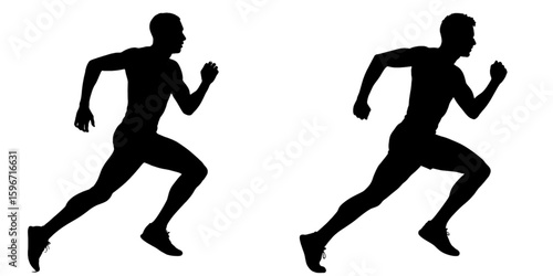 Two silhouettes of male athletes running on a white background image on transparent background