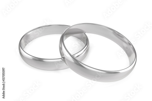 Two silver engagement or wedding ring isolated on white background. 3d rendering