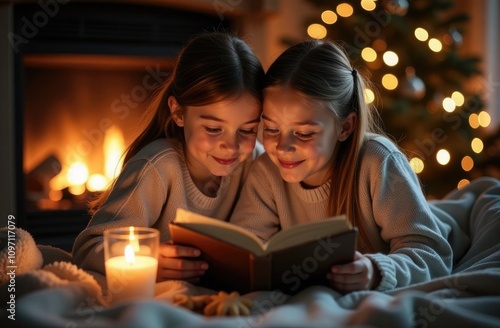 friendship, children, book, family, christmas, christmas, home, reading, girl, together, smiling, smile, education, learning, mother, sister, daughter, childhood, children, winter, happiness, happy, fun, joy, love, holiday, celebrate, celebration, gift, gift, present, present, person, people, fireplace, lifestyle, room, house, fire, beauty, care, indoor, read, magic, tradition, rest, friends, meeting, studying