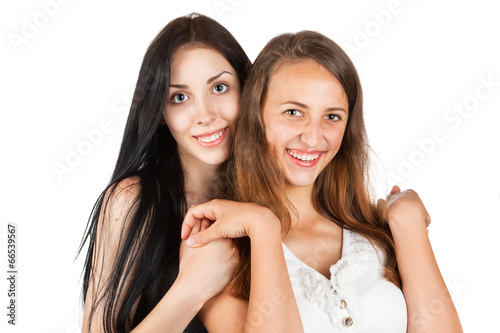 smile, 2, woman, beautiful, white, woman, isolated, smiling, portrait, girl, happy, attractive, beauty, young, face, hair, brunette, studio, sister, female, teeth, teenage, pretty, friends, girl, adult, model, people, lady