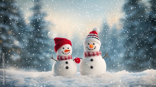 snowman, winter, snow, forest, tree, white, red, black, foulard, hat, cute, festive, christmas, holiday, season, december, jan, february, glacé, frosty, cold, icy, blizzard, snowflake, landscape, nature, outdoors, cheerful, happy, smiling, playful, fun, friendship, together, magical, whimsical, charming