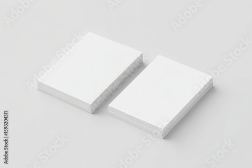 two stacks of blank white A4 letterhead paper sheets, isometric perspective, slightly angled and separated, soft realistic shadows on a light gray background, minimal corporate stationery mockup