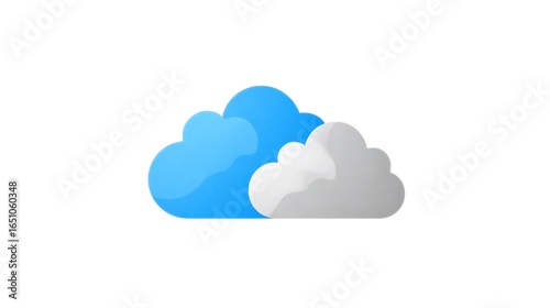 Two stylized cloud shapes in blue and gray on a clean white background graphic design