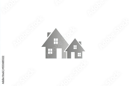 Two stylized gray houses against a white background.