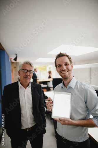 2, successful, businessman, standing, office, using, digital, tablet, happiness, smiling, copy space, technology, 4, people, computer, communication, senior, adult, business, group, woman, man, occupation, businessman, display, holding, solution, connection, presenting, optimistic, confidence, wireless, blank, showing, mature, caucasian, job, happy, emotion, female, male, young