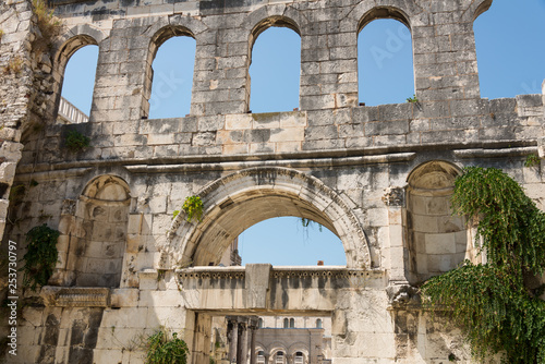 croatia, dalmatian, eu, europa, roman, cleaving, building, city, city landscape, coast, exterior, facades, old, remain, ruin, sea, summer, touristic, travel, urban