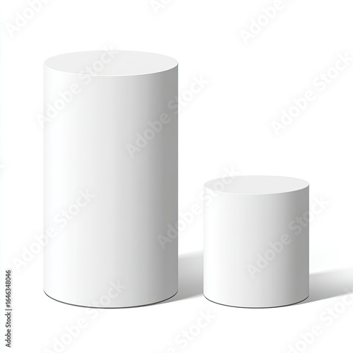 Two white cylindrical podiums, one larger than the other, on a white background