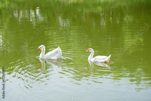 goose, lake, nature, animal, beak, bird, couple, swimming, cute, domestic, ecology, environment, feather, floating, pet, duck pond, poultry, river, rural, summer, 2, water, white