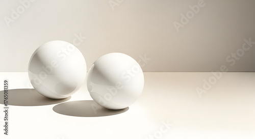 two white porcelain spheres on a beige-gray-brown gradient