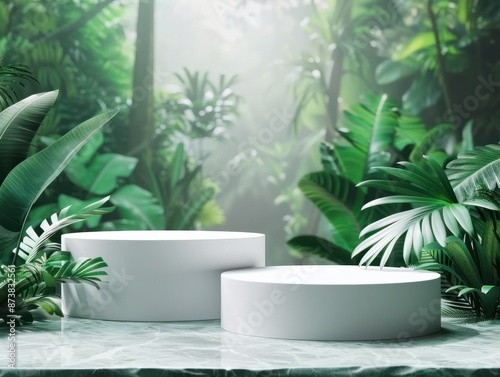 nature, tropical, foliage, leaf, tree, vibrant, exotic, environment, showcase, marketing, exhibit, promotional, advertising, stage, green, botanical, design, setting, ecology, event, luxurious, stylish, contemporary, display, circular, dais, exhibition, trendy, elegant, natural, bright, fresh, eye-catching, beautiful, modern