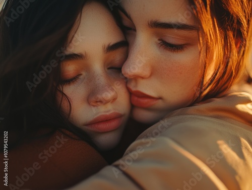 woman, hugging, red, head, warm, affectionate, people, young, female, love, together, beauty, 2, adult, lesbian, friendship, pretty, caucasian, lifestyle, friends, couple, girlfriend, portrait, cute, attractive, family, bed, home, romance