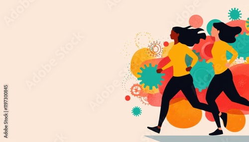 woman, running, fitness, health, exercise, activity, sport, illustration, active, motion, lifestyle, dynamic, colourful, vibrant, abstract, background, energy, wellness, teamwork, motivation, determination, fun, movement, joy, shape, design, creativity, female, happiness, nature, silhouette, art, graphic, positive, diversity, strength, portrait, leisure, culture, community, friendship, inspiration, togetherness, agility, flow, sprint, playful, uniqueness