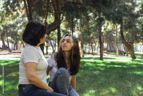 friends, park, tree, sunlight, leisure, nature, smiling, companionship, warmth, woman, green, joy, relaxation, shoulder, casual attire, lifestyle, happiness, bonding, calmness, gathering, serene, environment, summer, day, playfulness, laughter, carefree, harmony, close, brown, hair, attire, togetherness, moment, beauty, sunlit, enjoying, company, peace, surrounding, greenery, friendship, face, connection, shared, atmosphere, goal