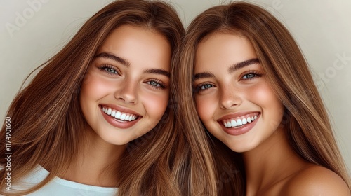 beauty, young, female, woman, portrait, hair, model, happy, white, face, person, fashion, care, cheerful, skin, style, smile, natural, healthy, pretty, attractive, friendship, background, cute, look, caucasian, friends, together, skincare, brunette, make-up, closeup, curly, make-up, spa, coiffure, studio, treatment, clean, complexion, cosmetology, fresh, sister, bright, positive, horizontal, health, 2, lifestyle