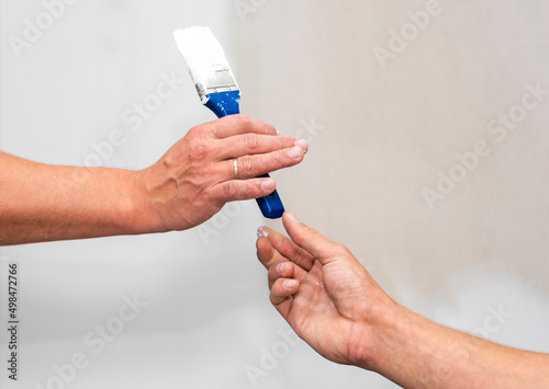 skin, finger, activity, adult, apartment, blue, brush, building, caucasian, change, closeup, concept, contractor, design, bricolage, equipment, hand, hold, home, house, improvement, interior, job, lifestyle, male, man, manual, object, occupation, paint, paintbrush, painter, partner, people, person, professional, repair, repairman, room, take, tool, 2, wall, white, work, men at work, working man, young