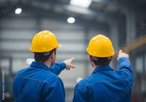 men at work, work, pointing, factory, industry, safety, man, hard hat, apparel, industrial, occupation, employee, team, collaboration, labor, construction, building, machinery, production, manufacturing, operation, personnel, professional, workplace, oversight, guidance, direction, discussion, inspection, review, planning, strategy, warehouse, teamwork