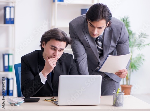 Two young employees working in the office