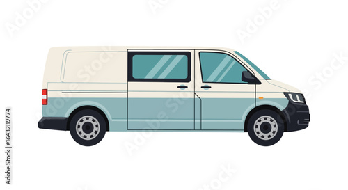 Twotone White and Light Blue Panel Van Illustration.