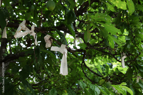 blessing, fortune, hope, curse, chance, wish, attaching, disrobed, culture, traditional, good, change, silent, serene, peaceful, temple, shinto, shinto, paper, luck, bad, disaster, calamity, bad luck, plant, leaf, background, tree, tree branch, park, beautiful, bright, leaf, organic, fresh, wood, japanese, japan, shine, daytime, colours, horizontal